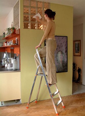 С помощью стремянки можно легко и быстро выполнить любую работу. Лестницу можно использовать для хозяйственных нужд, а также в качестве вспомогательного оборудования при выполнении ремонтных работ.