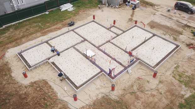 В процессе возведения фундамента в качестве утеплителя используются пенополистирольные плиты, которые укладываются на песчаную подушку, а затем засыпаются гравием и заливается бетонным раствором. Особенностями УШП является то, что такой фундамент обладает высокой прочностью и долговечностью.