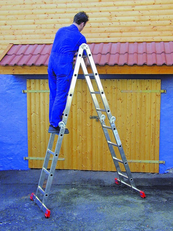- Удлинитель боковин дает возможность вертикально и устойчиво установить лестницу на неровном покрытии;