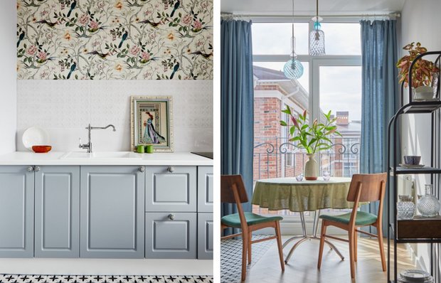 Дизайнер Татьяна Атюкина создала для своей заказчицы, работающей HR в финансовой компании, кухню, которая прекрасно сочетает уют и функциональность. Вдохновением для оформления послужили любимые вещи хозяйки, такие как коллекция винтажной мебели.