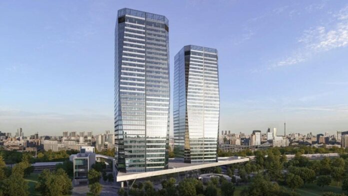 Первый этап проекта включает две 34-этажные башни, объединенные стилобатным пространством галерейного типа, в котором разместятся магазины и сервисная инфраструктура. Проектом также предусмотрено двухэтажное здание, связанное с башнями на уровне подземного паркинга, указывается в сообщении Москомархитектуры. «»Офисные башни получат выразительный кристаллообразный силуэт с парящим эффектом за счет сужения к верхней и нижней частям. Безупречно ровная поверхность стеклянных фасадов с зеркальным отражением практически не будет давать искажений и позволит новой доминанте района создавать интересные визуальные эффекты, буквально растворяясь в окружении», – приводятся в нем слова главного архитектора Москвы Сергея Кузнецова.