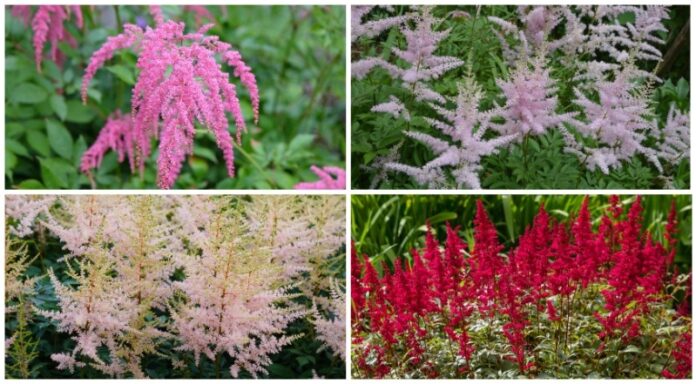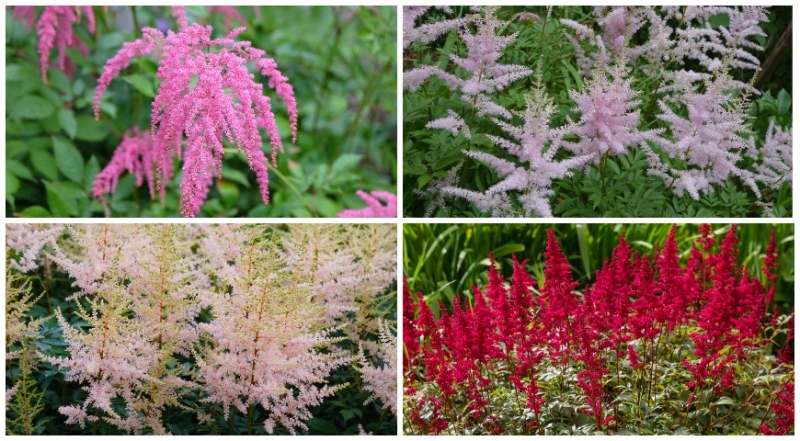Астильба в цветнике, сорта Montgomery, Kvele, Mont Blanc