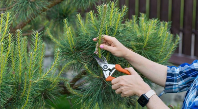 Сосны формируют вручную. Обрезая свечи ножницами или секатором, можно сильно повредить иголки, в результате чего они станут коричневыми или вообще отомрут.