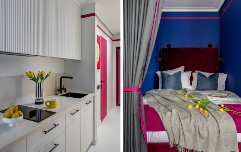 Дизайнер Сара Михайлова полностью изменила представление о маленьких квартирах, преодолев все ограничения пространства и создав удивительно функциональный и стильный интерьер на 21 кв. м. Несмотря на скромную площадь, ей удалось разместить кухню, уютное место для отдыха, отдельную спальню, прихожую и санузел. Заказчицей стала молодая девушка, которая решила оформить свое первое жилье в ярком и выразительном стиле поп-арта, что добавило исключительной индивидуальности в каждую деталь интерьера.