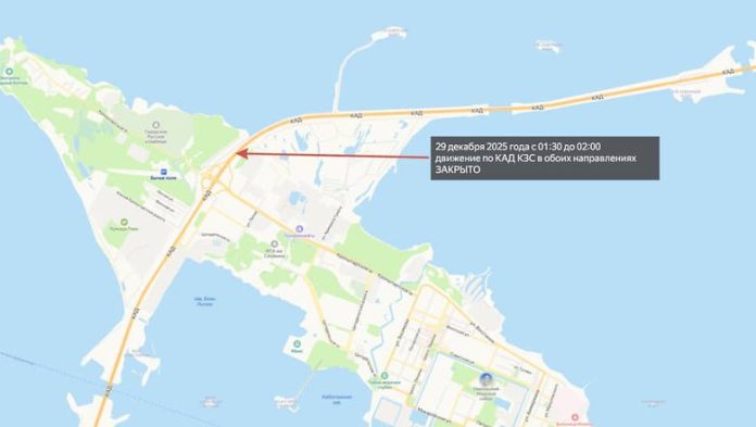 Кроме этого, на срок с 01:30 до 02:00 29 декабря движение полностью перекроют по внутреннему и внешнему кольцу КАД на участке 127+300 км.