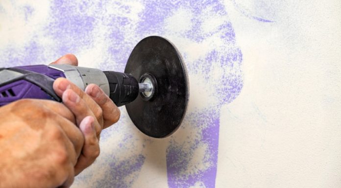 Намного эффективнее работает дрель или шлифмашинка. На устройство надевают насадку с абразивом или металлическую щетку, а затем проводят с усилием по поверхности, буквально стесывая окрашенный слой. Этот способ отнимает минимум времени и дает хорошие результаты, но надо иметь в виду, что от него будет очень много пыли (а значит, понадобятся очки и респиратор) и он чрезвычайно шумный. Кроме того, если применять его для очистки от масляной краски, придется постоянно менять абразивные насадки, так как они будут быстро стираться.