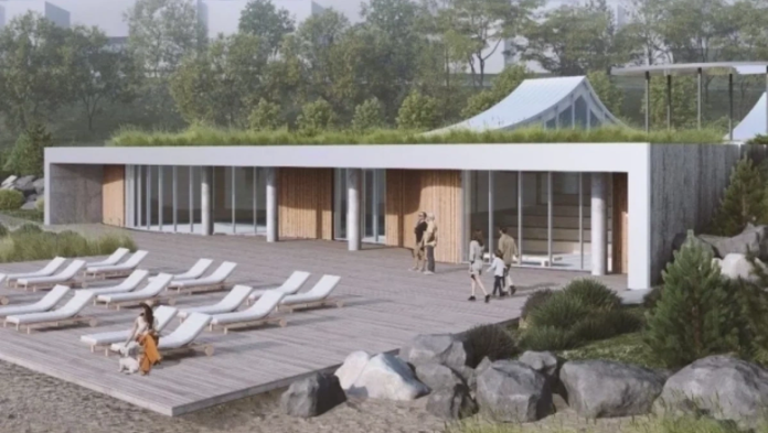 По данным КРДВ, строительство энергоэффективного здания с осевой планировкой и парными-амфитеатрами с панорамным термостеклом, ориентированными на акваторию, инициаторы намереваются начать в сентябре 2026 года, предусматривая подогреваемые пешеходные дорожки к береговой линии и солярий с стационарными лежаками.