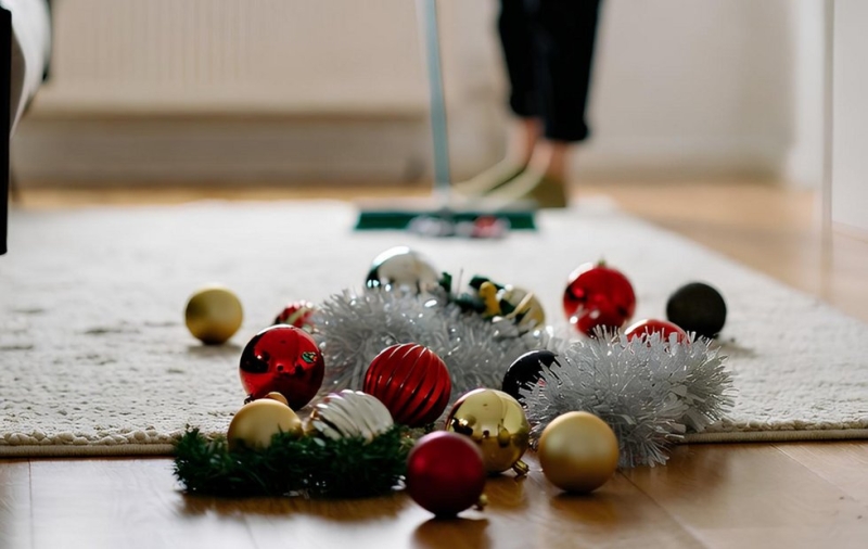 Сначала пропылесосить везде: углы, под мебелью (куда достает насадка), плинтусы. Если есть ковер — особенно тщательно, там после праздников точно есть конфетти, иголки от елки и крошки.