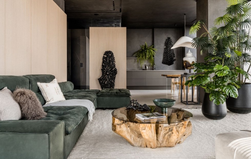 В этом дизайн-проекте природа и технологии образуют гармоничный эстетический симбиоз. Естественные материалы, обилие пышной зелени и атмосфера островной безмятежности изящно контрастируют с минималистичными формами и футуристичным оснащением квартиры.