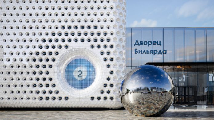 В Мнёвниковской пойме на северо-западе Москвы утвердили архитектурную концепцию нового спортивного объекта — Дворца бильярда. Здание площадью 9,8 тыс. кв. м возведут рядом с Тереховским прудом и оформят в виде геометрического паттерна из треугольников, напоминающего форму бильярдного стола.