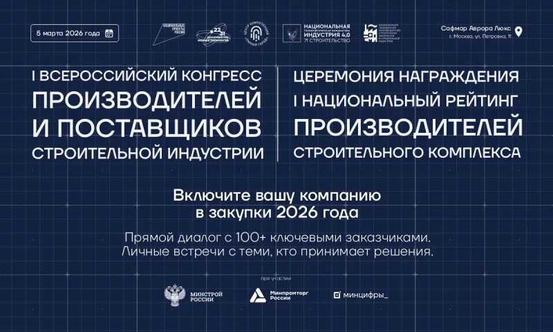 5 марта 2026 года в Москве состоится I Всероссийский конгресс производителей и поставщиков строительной индустрии. Мероприятие – это рабочая площадка, на которой ведущие застройщики и генподрядчики страны формируют и дополняют пулы своих подрядчиков до начала тендерного сезона. Об этом «Стройгазете» рассказали представители мероприятия.