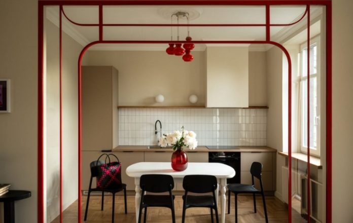 Как дизайнер обустроила двушку 62 м² в сталинке: винтаж, лепнина и красные акценты