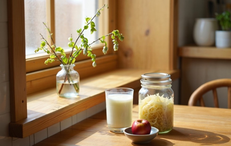Для максимального эффекта включайте ферментированные продукты в рацион ежедневно, но понемногу. Порция квашеной капусты на обед, стакан кефира вечером, моченое яблоко на перекус. Регулярность важнее объема: 100 граммов ферментированных продуктов каждый день полезнее, чем пол-литра кефира раз в неделю.