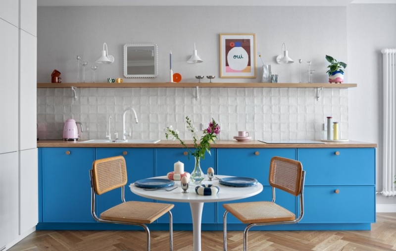 Дизайнер Анжелика Макаревич создала яркий интерьер для молодой семейной пары и их трех бостон-терьеров — Мары, Руни и Каси. Задача стояла амбициозная: разработать небанальный проект с легким налетом стиля мид-сенчури, но при этом учесть интересы всех обитателей. Ключевым пожеланием заказчицы стала просторная отдельная гардеробная — ведь она увлекается модой и стремится к безупречному стилю во всем.
